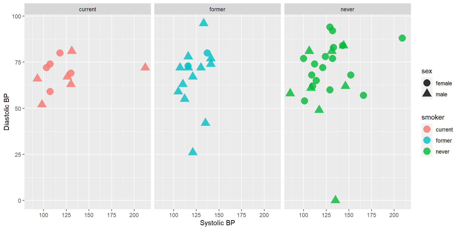 smoker -> colorcolor is blackfacet: a subplot that shows one subset of the data