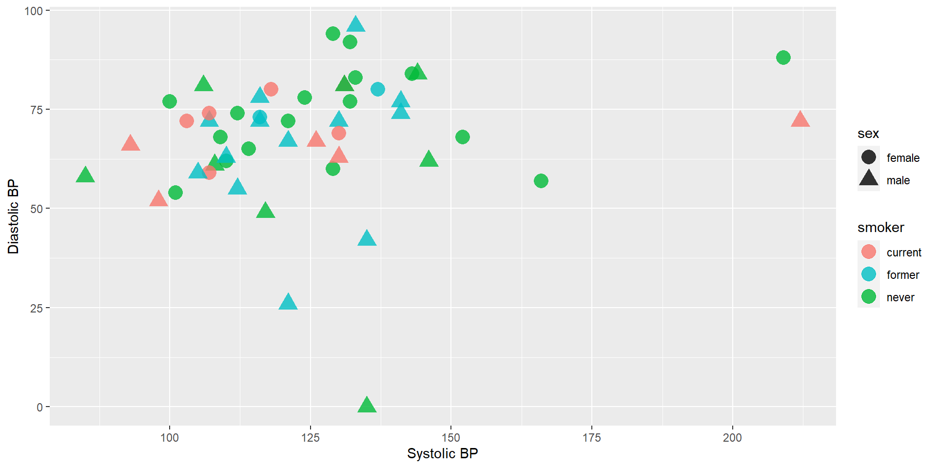 ggplotUsing the ggplot2 package, we can create graphics by building up layers, each of which may have its own data, glyphs, aesthetic mapping, etc.